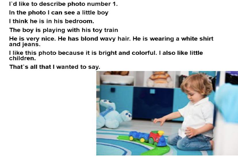 На фотографии номер 1 я могу увидеть маленького мальчика. Он играет со своим мини поездом. На первый взгляд он очень маленький ему 3 года.