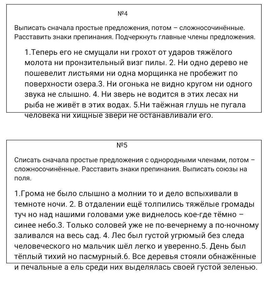 4)Ни зверь не водится в этих лесах, ни рыба не живёт в этих водах (1 часть: подлежащее-зверь, сказуемое-не водится; 2 часть: подлежащее-рыба, сказуемое-не живёт)