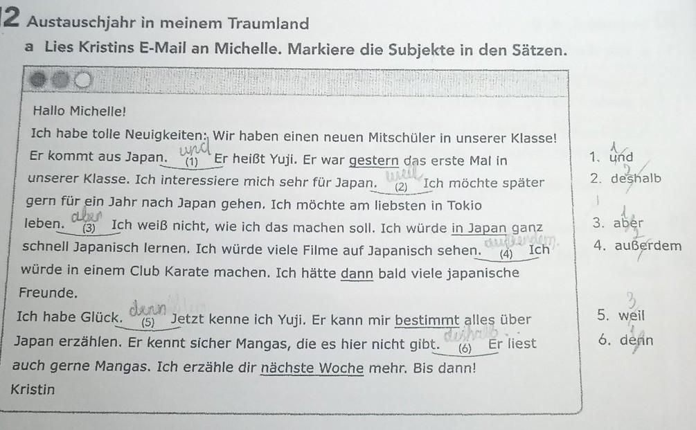 vielen Dank für deine E-Mail, ich habe mich sehr darüber gefreut. Ich finde es toll, dass du jetzt einen japanischen Mitschüler in deiner Klasse hast, weil du jetzt mit seiner Hilfe Japanisch lernen kannst.