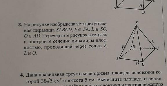 если это третье задание, то я понимаю нужно нарисовать плоскость ,соедини точки F, O, L и все вот оно сечение