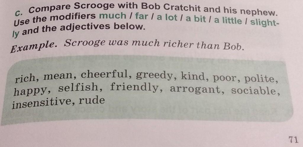 там надо сравнить Скруджа и Боба по словам из зелёной рамки
