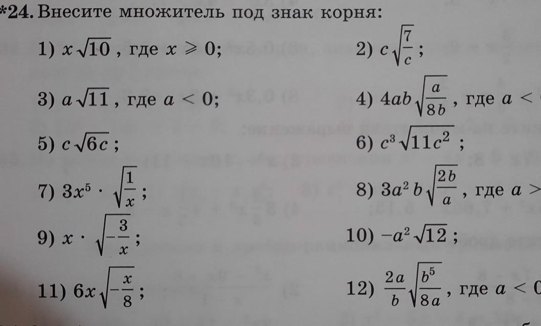 9) √(-3х), 10) -√(12а⁴), 11) √ (-4,5х³) , 12 ) - √( в³а/2)