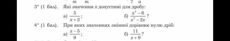 4)при яких значеннях змінної дорівнює нулю дріб: