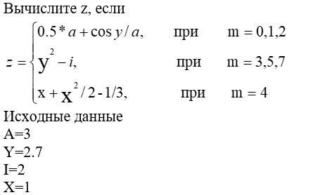 Если m не равно 0, 1, 2, 3, 4, 5 или 7 значение z не вычисляется.