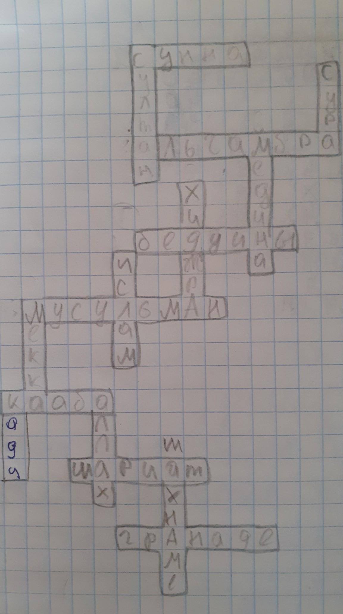 это кроссворд. нужно ответить на вопросы так чтобы самого ответа не было