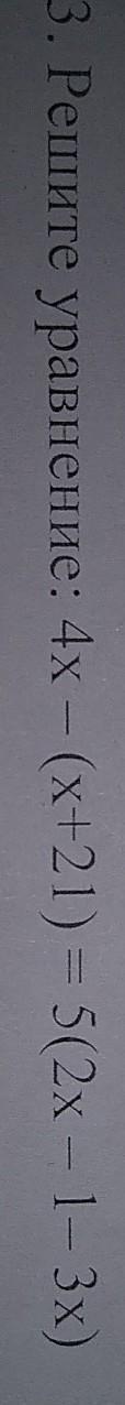 для начала раскрываем скобки ну в левой части меняется знак на противоположный потому что перед скобкой стоит знак минус а во второй просто надо было 5 перемножить на те числа которые в скобках затем все неизвестные числа с x переносим в левую часть а известные в право потом все сложите или отнесите и получите ответ