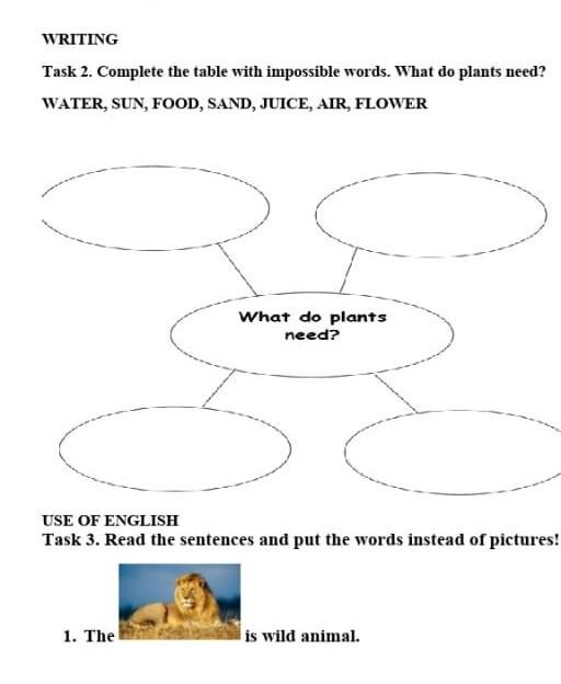 Объяснение:Writing The Plants need Water Sun Air Sand