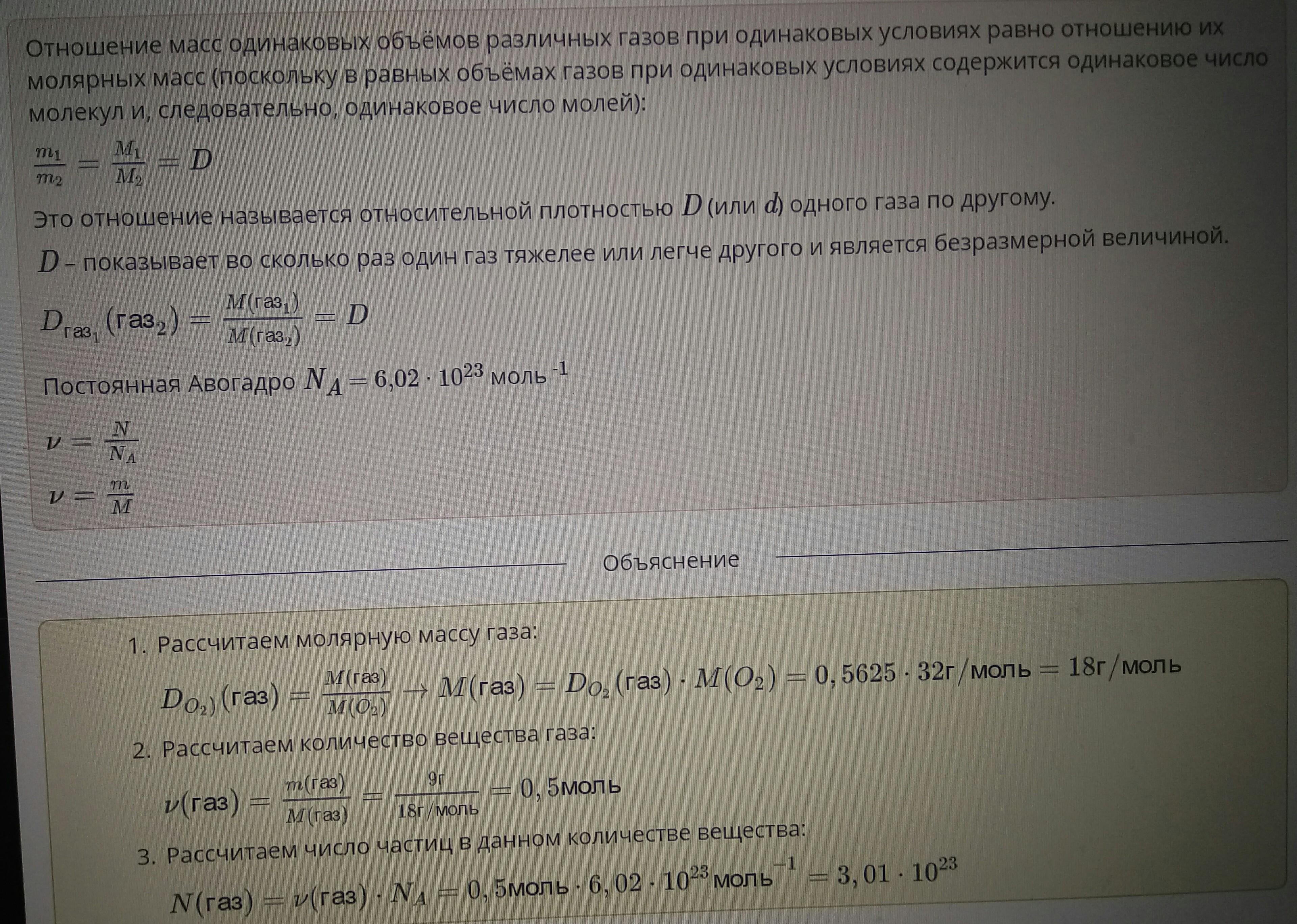 Определи количество молекул в 9 граммах газа с относительной плотностью по кислороду 0,5625.