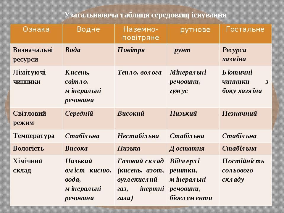 Визначте особливості середовищ існування за планом а) визначальні ресурси;б) лімітуючи чинники ;в) світловий режим;г) дія температури; д) вологість ; е) хімічний склад