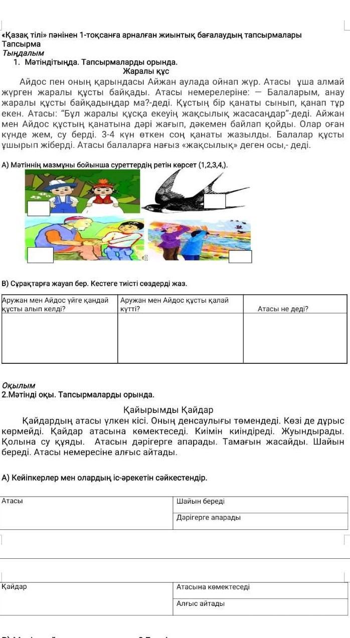 ранняя птица приаезли птицу дом? как Аружан и Айдос ждали? что сказал дед, сор по англискому