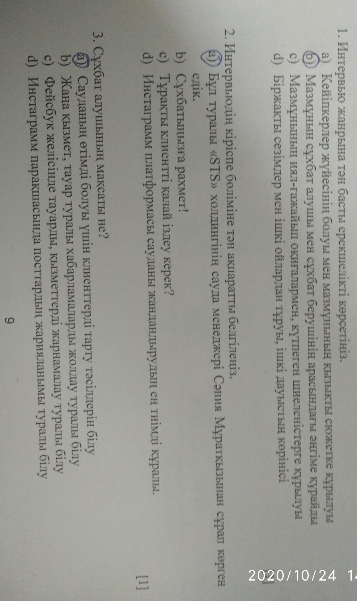 или пишите в Инстаграм: klimenko.ekaterina.andreevna пришлю ответы там в том числе айтылым и жазылым