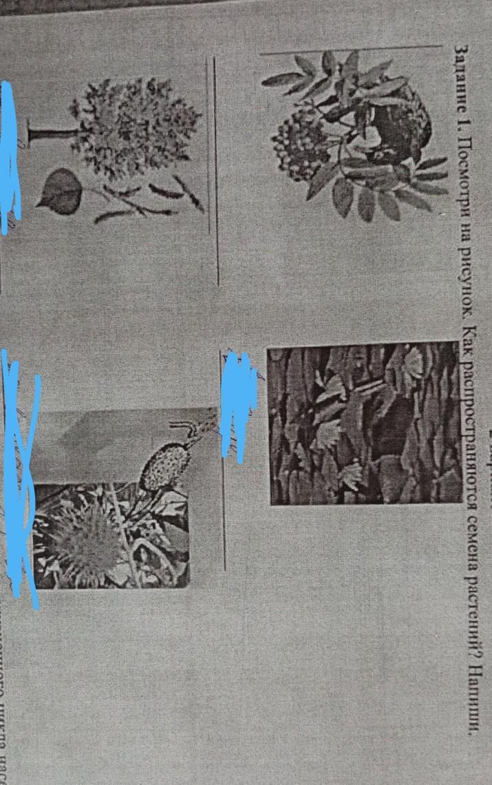 Задание 1. Посмотри на рисунок. Как распространяются семена растений? Напиши,