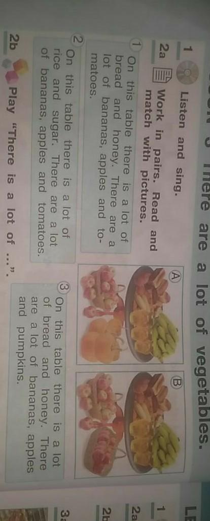 в 3 тексте говориься все также о хлебе бананах меде, яблоках а также тыквах, которые присутствуют только на фото под буквой А