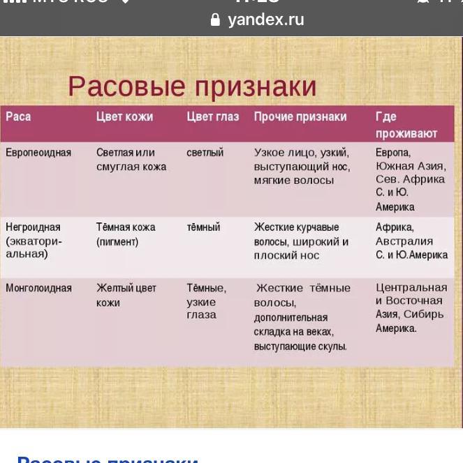 Вот признаки Такие как разрез разрез глаз цвет кожи и так далее