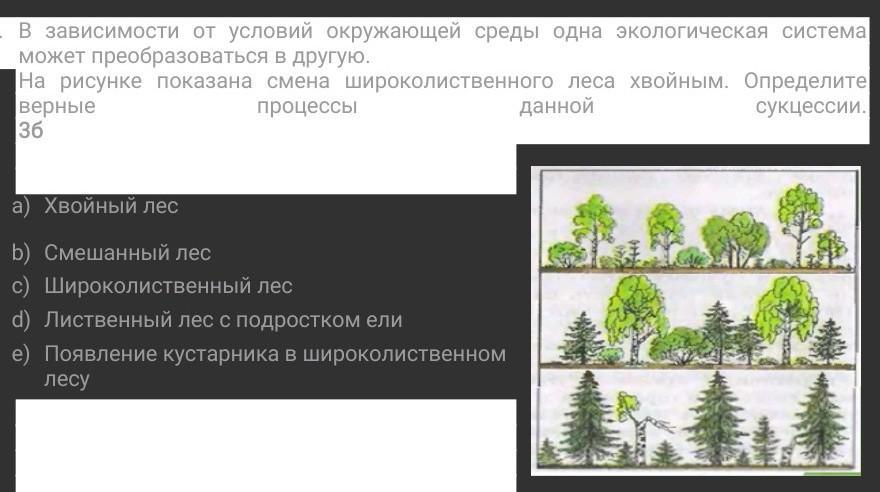 На рисунке показана смена широколиственного леса хвойным. Определите верные процессы данной сукцессии. 3б