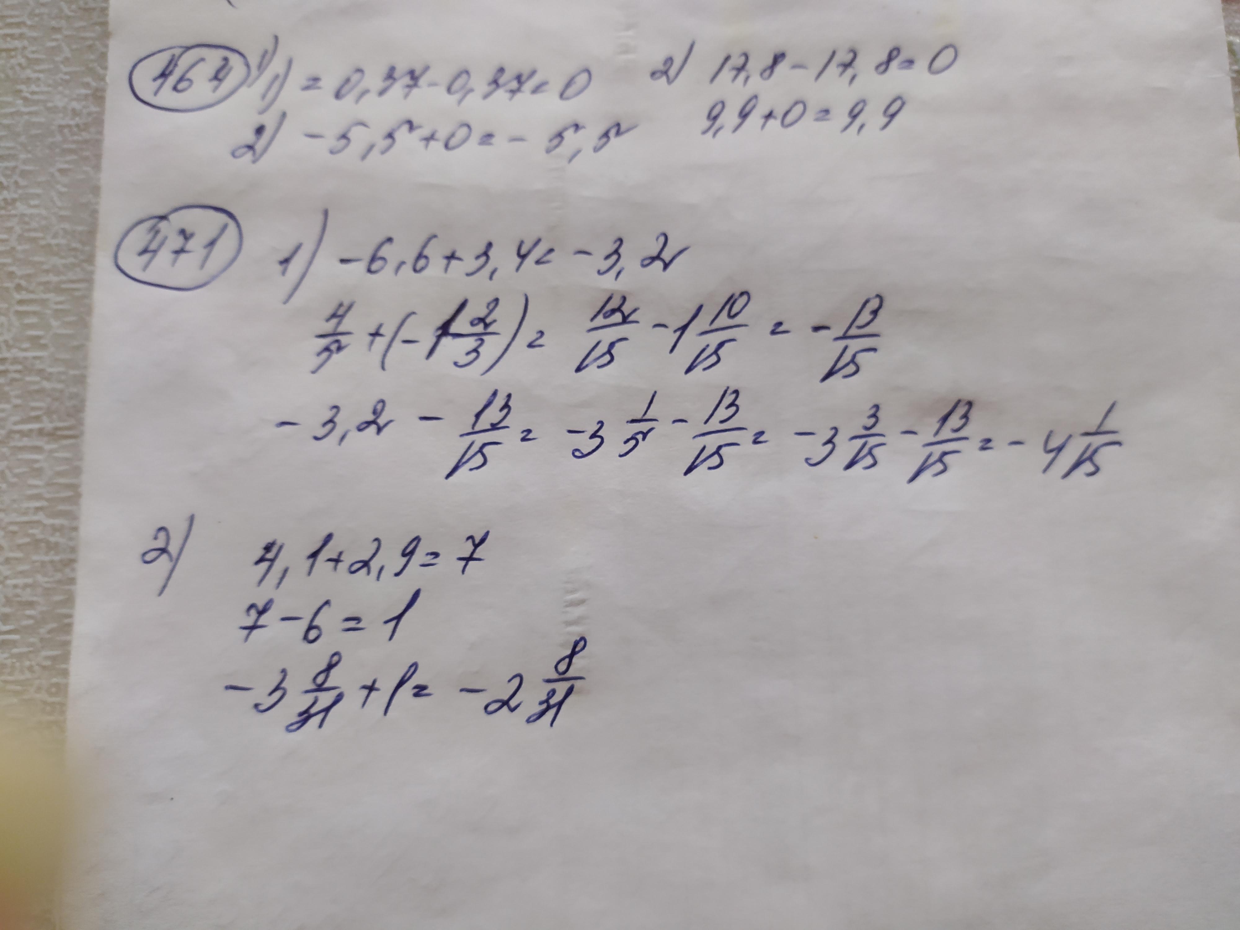3)- 6,6 + 4/5 + ( -1 2/3 ) + 3,4 = - 6,6 +0,8 +3,4 - 1 2/3 = - 2 ,4 - 1 2/3 =