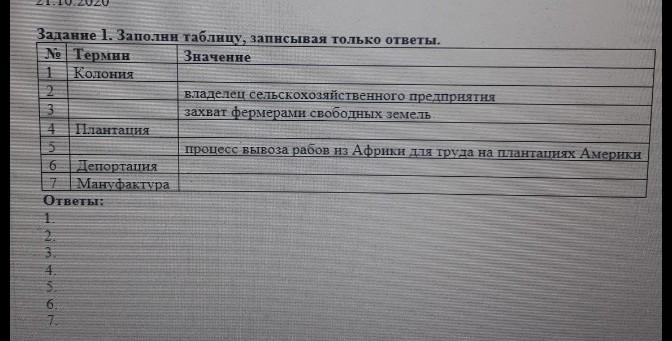 1.колония - зависимая территория, находящаяся под властью иностранного государства (метрополии), без самостоятельной политической и экономической власти, управляемая на основе особого режима.