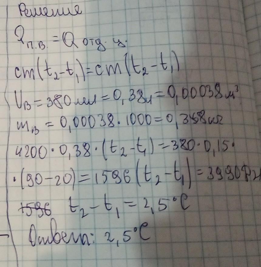 4. На сколько изменится температура воды объемом и 380 мл, если она