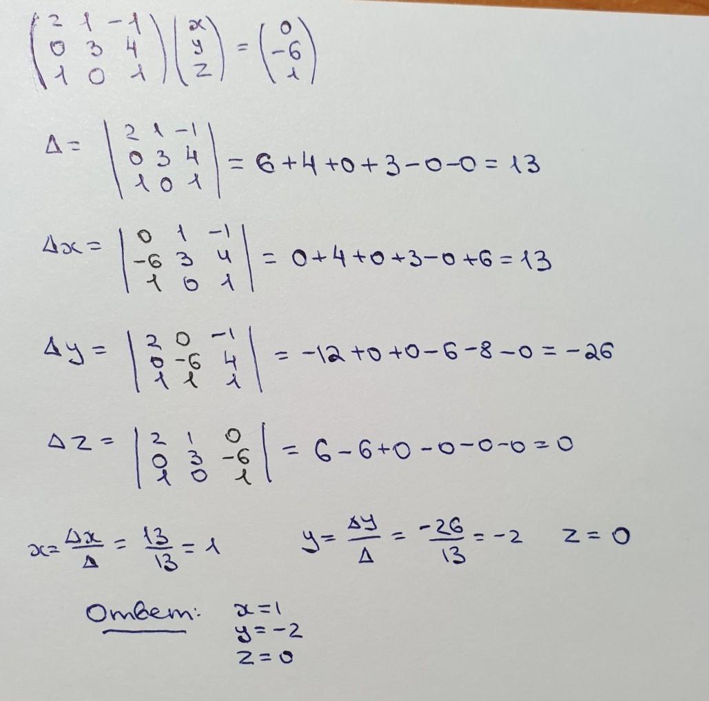 Решите систему уравнений, пользуясь формулой Крамера