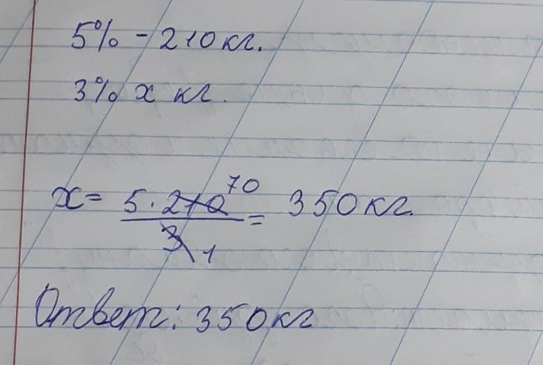 Морская вода содержит 5% соли . Сколько пресной воды надо добавить к 210кг морской, чтобы получить смесь, содержащую 3% соли?