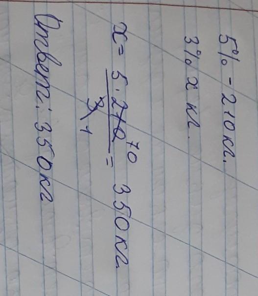 Морская вода содержит 5% соли . Сколько пресной воды надо добавить к 210кг морской, чтобы получить смесь, содержащую 3% соли?