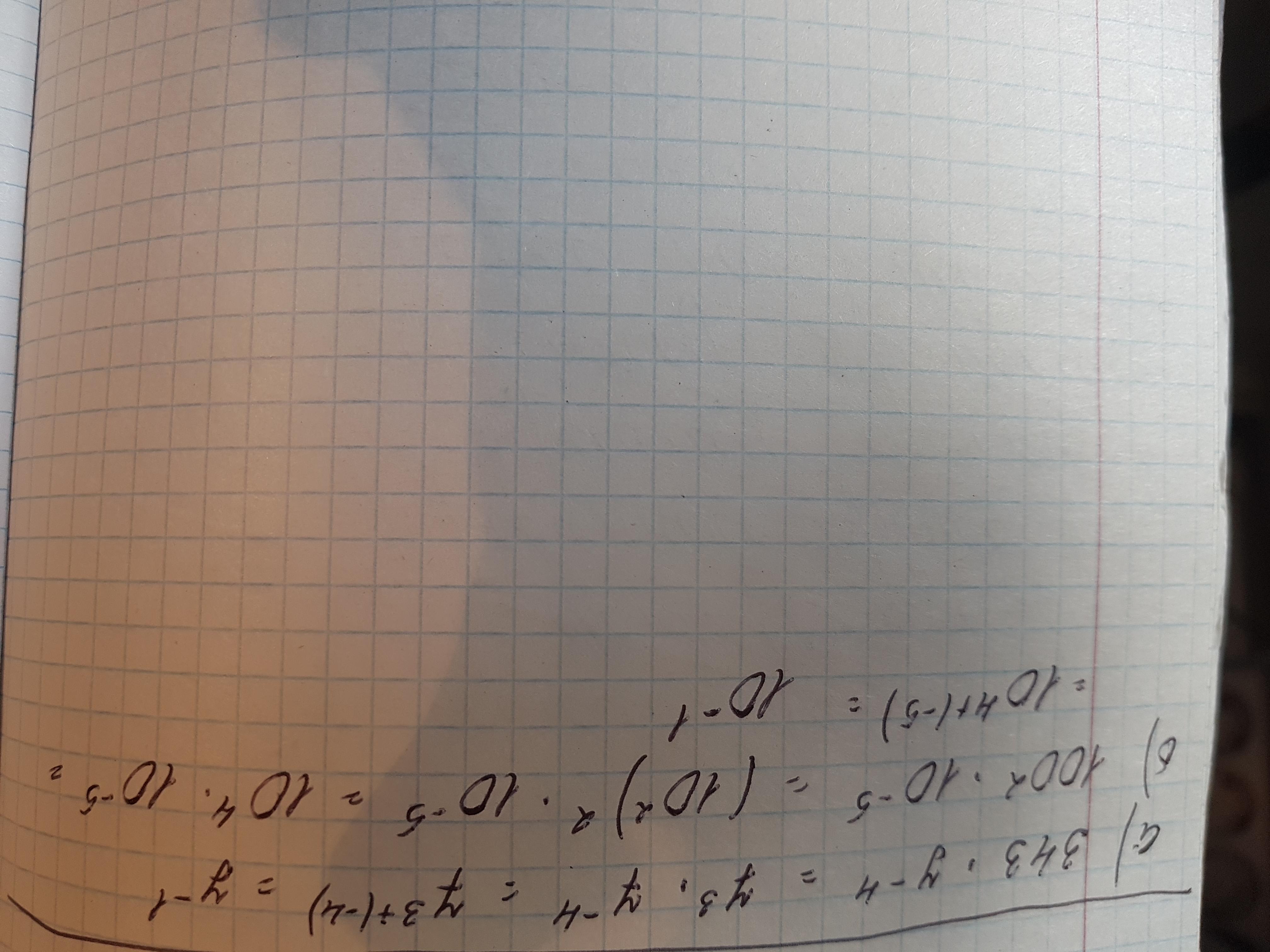 б) 100^2*10^(-5)=10^2*10^(-5)=10^(2-5)=10^(-3)=1/1000=0,001.