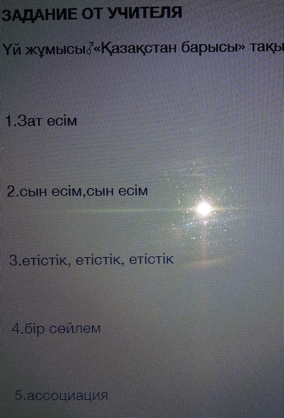 Үй жұмысы «Қазақстан барысы» тақырыбына синквейн