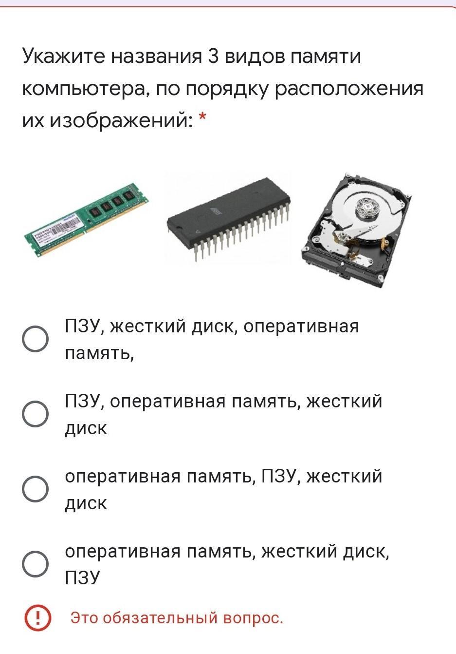 Оперативная память, ПЗУ, жесткий диск
