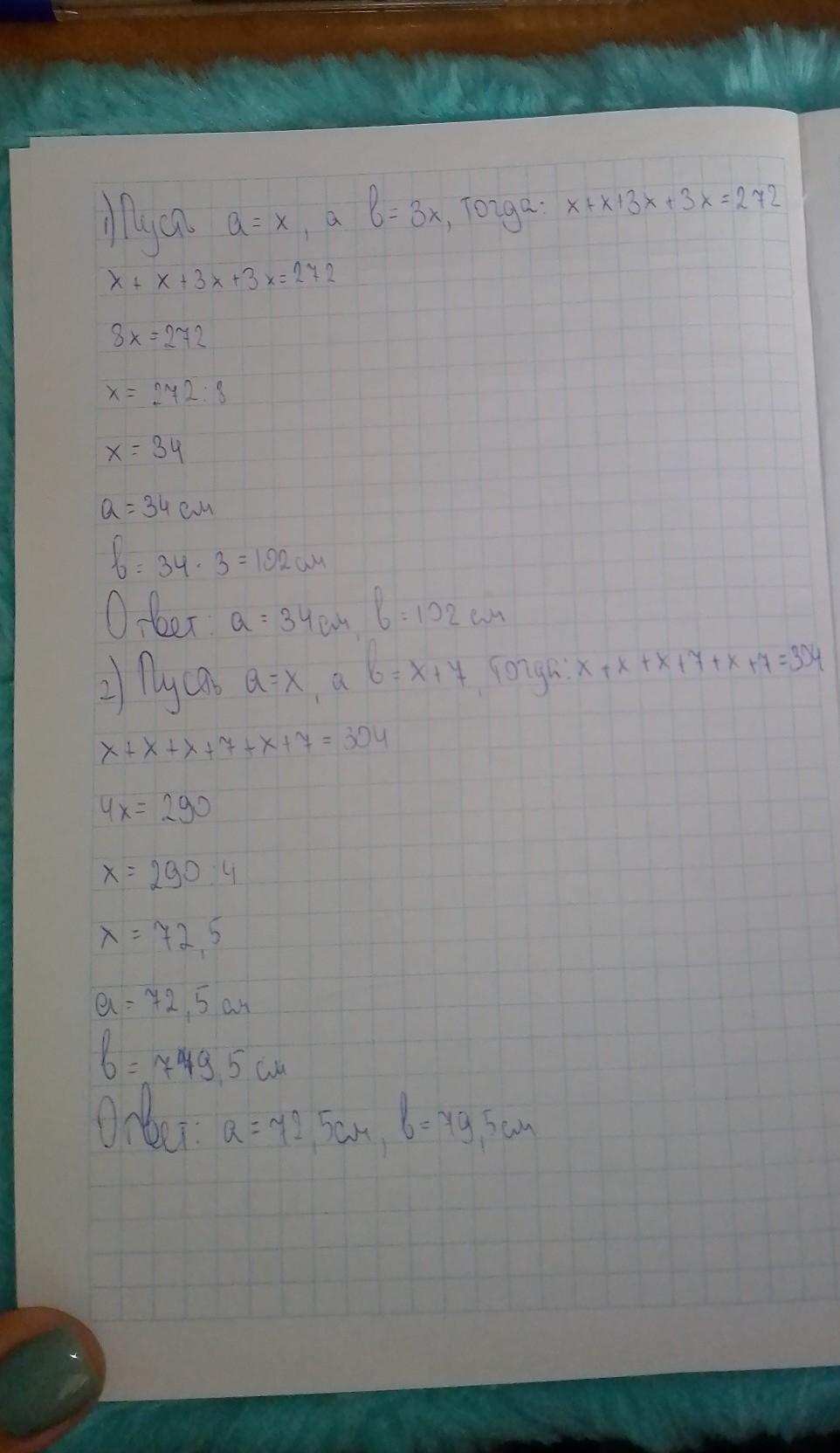 1)Одна из сторон параллелограмма в 3 раза больше другой. Найдите все стороны параллелограмма, если его периметр равен 272 см.