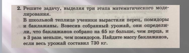 Тогда баклажанов собрано (х+65)=у/3 кг .