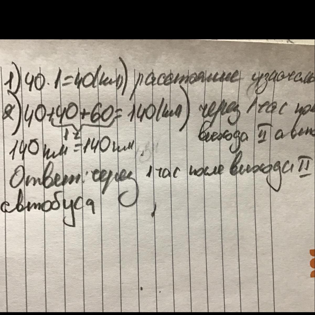 От автобусной станции отошел автобус со скоростью 40 км/ч. Через час от этой же станции в противоположном направлении вышел другой автобус, скорость которого 60 км/ч