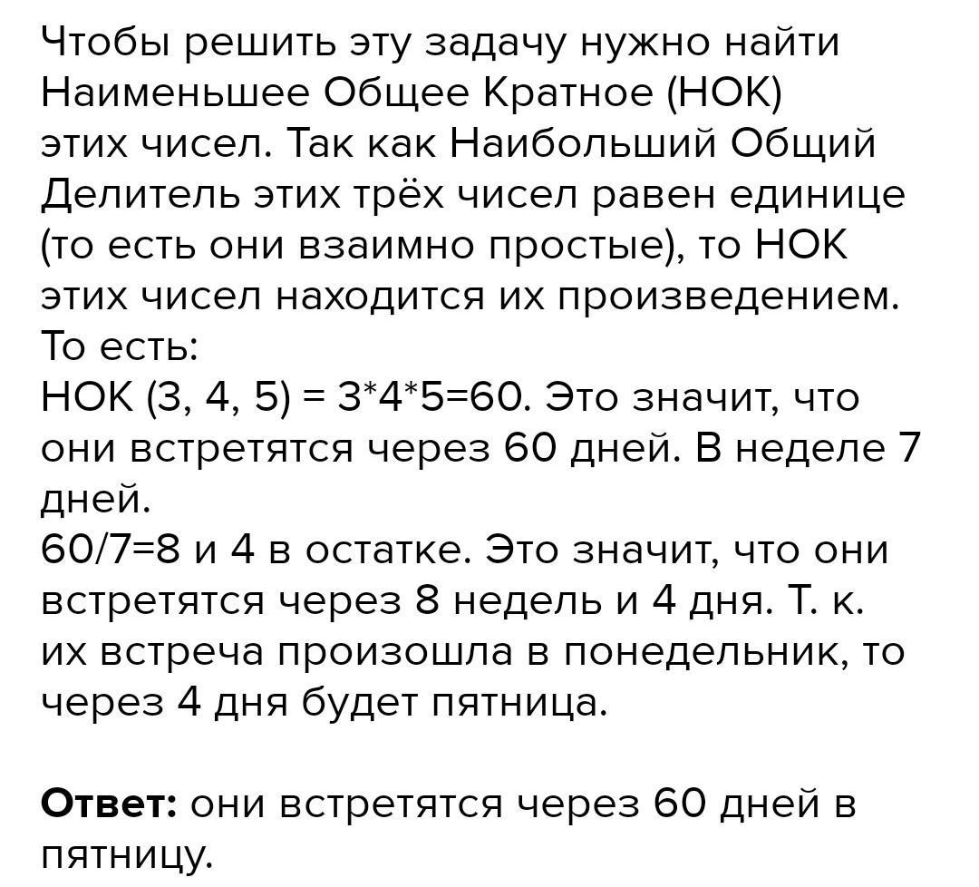 через сколько дней и в какой день недели они встретятся в следующий раз?