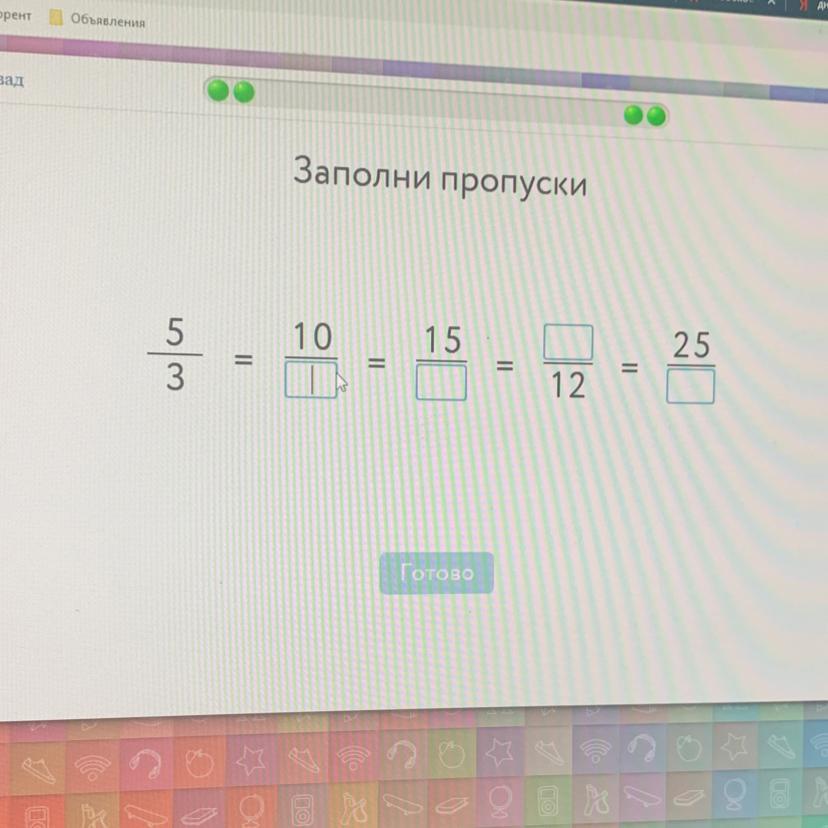 5/3 = 10/6 = 15/9 = 20/12 = 25/15