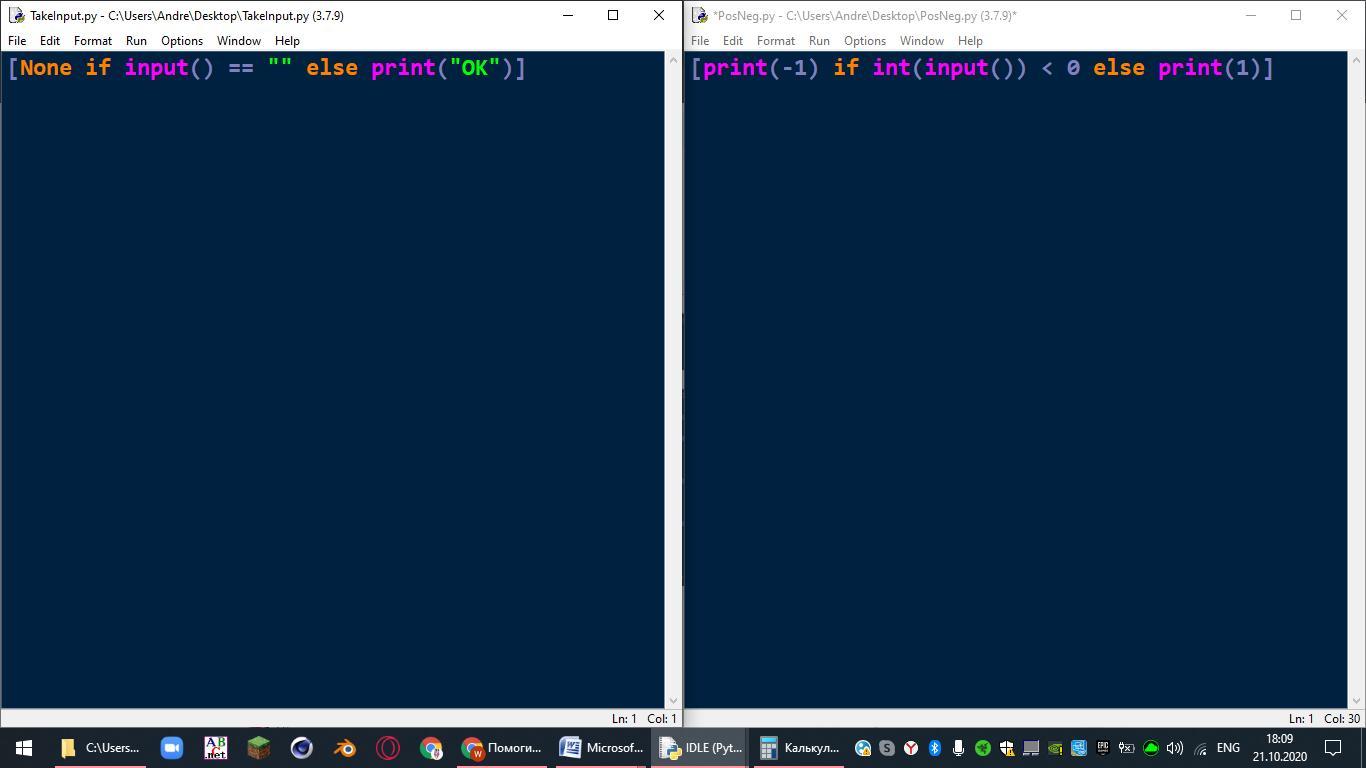 2. Напишите программу (файл PosNeg.py), которая запрашивает у пользователя число. Если оно больше нуля, то в ответ на экран выводится число 1. Если введëнное число не является положительным, то на экран должно выводиться -1.