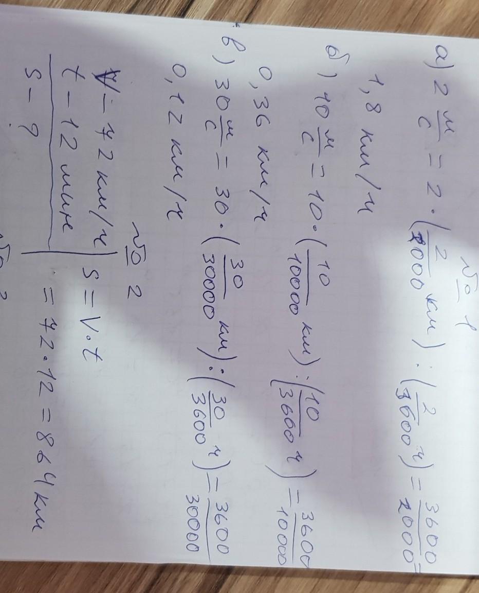 1.Выразите в км/ч следующие скорости: 2 м/с; 10 м/с; 30 м/с.