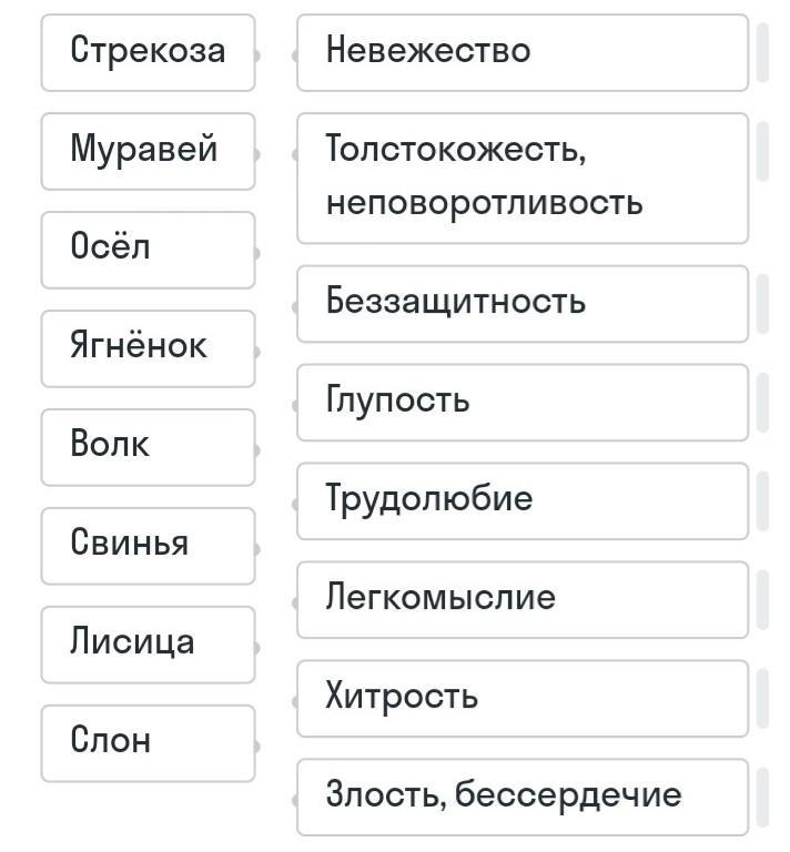 Соотнеси названия животных, приведённые в левой колонке, с человеческими качествами, которые