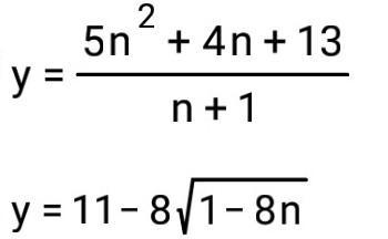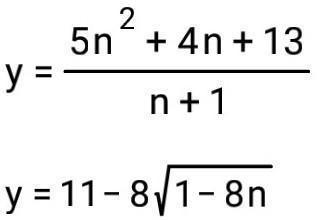 Найдите все целые значения переменной n, при каждом из которых спаведливо равенство (5n^2+4n+13)/(n+1)=11-8√(1-8n)