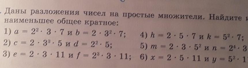 Даны разложения чисел на простые множители. Найдите их наименьшее общее кратное: