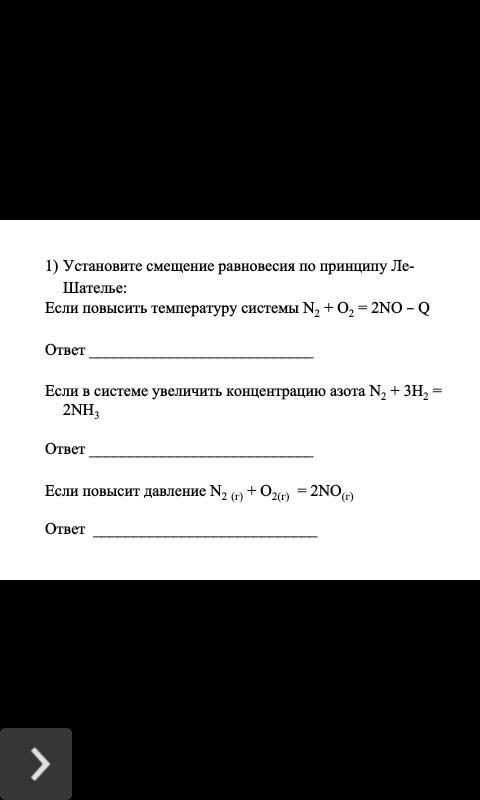 покажите смещение химического равновесия по принципу ле-шателье ,если повышают температуру и давление: а)p +o2=p2o5+ Q б)n2+h2=nh3-Q. 2. Посмотреть ответы. тайная тайная. 1) при повышении температуры хим. равновесие сместится в сторону эндотермической реакции, т.е. вле