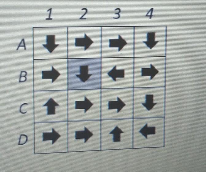 вквадрате 4 × 4 в отличном серым цветом клетки стоит фишка за одно действие фишка перемещается В соседнюю по стороне клетку по направлению стрелочки на которой стоит также после каждого перемещения стрелочка в клетке где только что была фишка меняется на противоположную С какой клетке фишка выйдет за границу квадрата