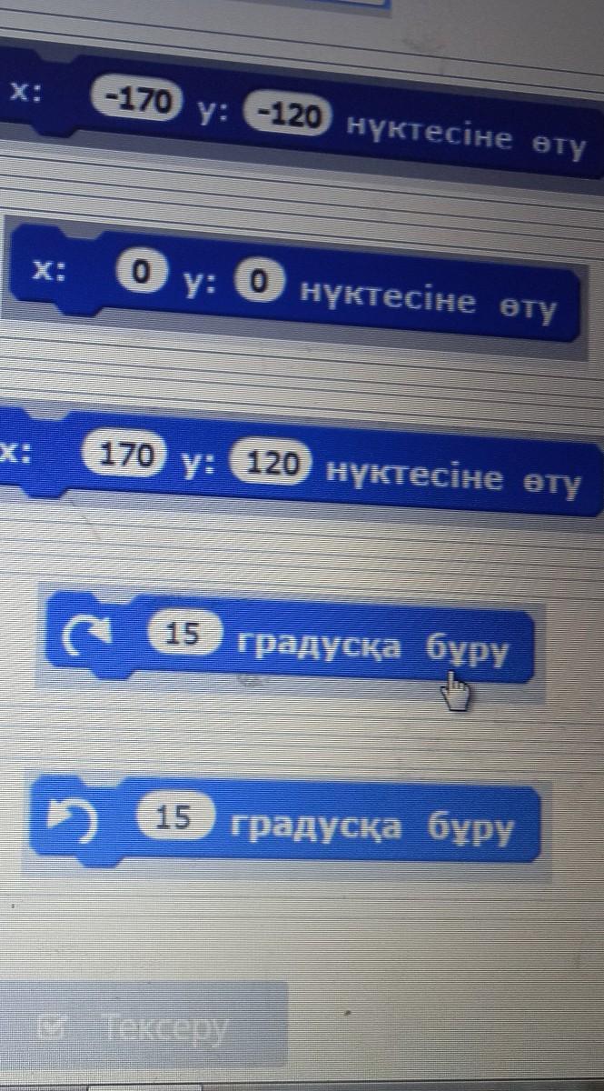 багдарламанын орындалу нәтижесін зерттеп, спрайтты сахнада козгалтуга болатын блокты аныкта
