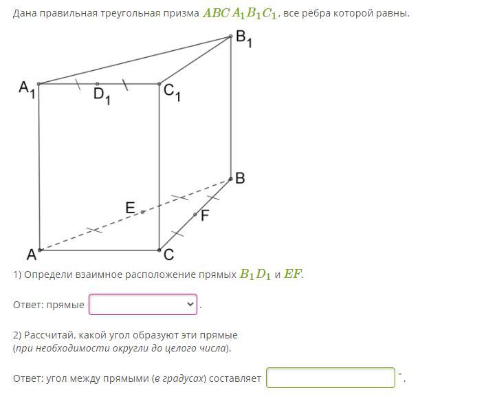 1) Oпредели взаимное расположение прямых B1D1 и EF.