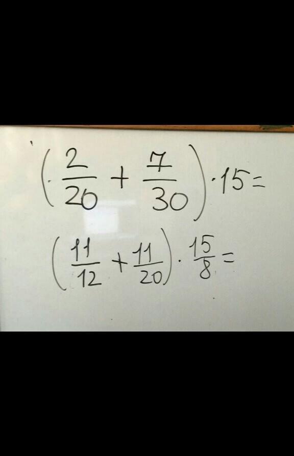 (2/20+7/30)•15=(6/60+14/60)•15=20/60•15=20