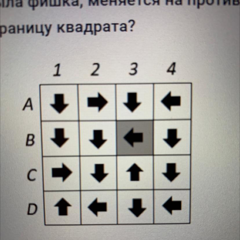 В квадрате 4 х 4 в отмеченной серым цветом клетке стоит фишка. За одно