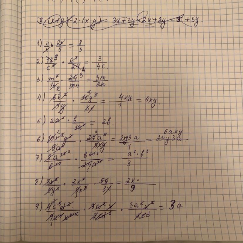 8. 3x^2/5y^3 умножить 2y^2/9x^3 умножить 5y/3x