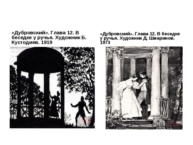 опишите картину в беседке у ручья 12 глава дубровский художник Д.Шмаринов