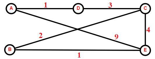 Посчитаем стоимость проезда из А в Е по различным маршрутам