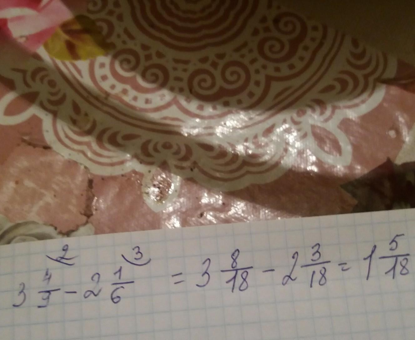 3 4/9- 2 1/6 =3 8/18 - 2 3/18=1 5/18