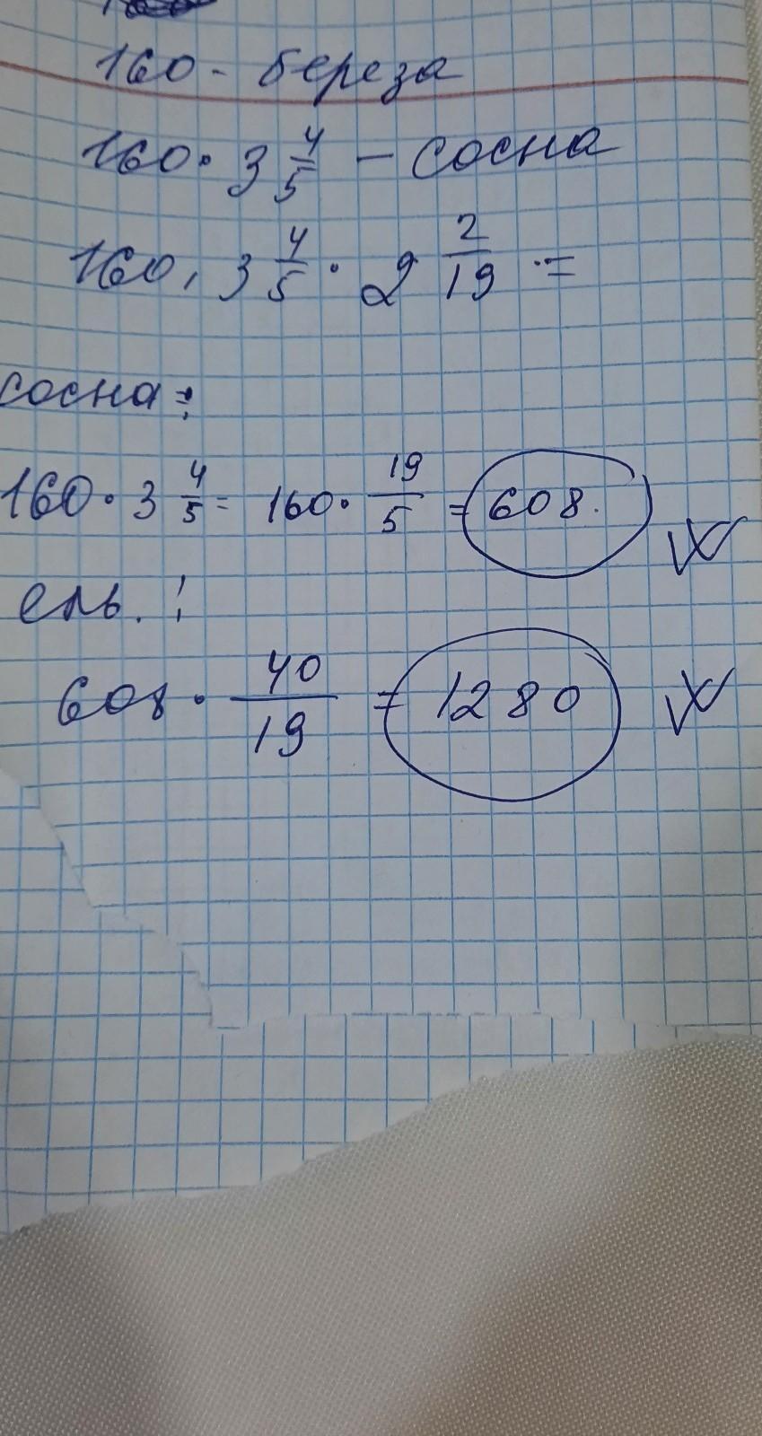 1. 160*3 4/5-160/1*19/5=32*19=608 лет - наибольший возраст сосны
