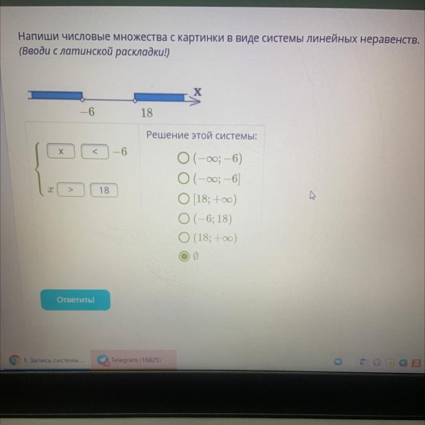да правильно так как двух пересечений этих систем нету поэтому получается пуста множина